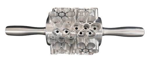 For cutting mini specialty donuts with hole in center. Makes 7cuts in one revolution or 14cuts in one revolution. Center hole is 13/16 inch diameter.