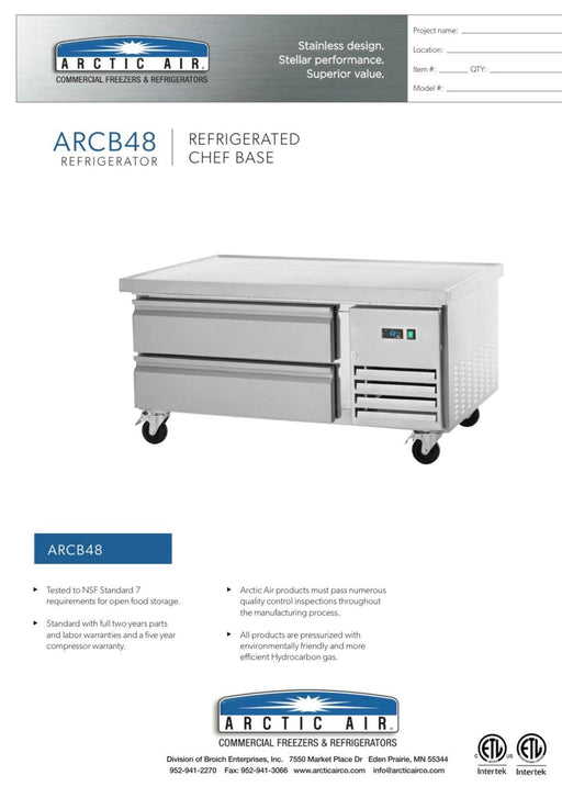 Arctic AirArctic Air ARCB48 Details This Arctic Air ARCB48 50" two drawer refrigerated chef base offers an affordable way to make the most of the space you h...