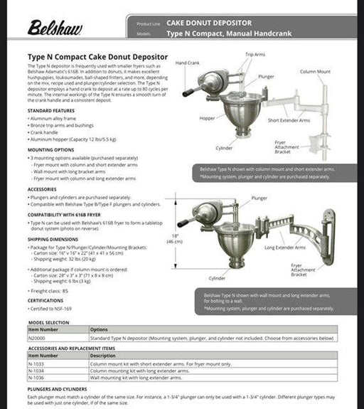 Belshaw Adamatic616B FRYER WITH TYPE N HUSHPUPPY DEPOSITOR FOR HUSHPUPPIES- Unit is single phase only- (208V or 240V) Comes with a Submerge Screen, 2"-inch plunger...