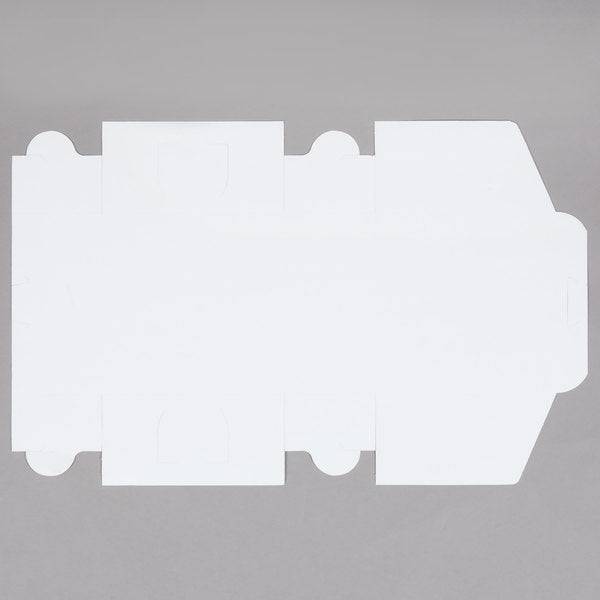 White Non-Window Bakery boxes are made of clay-coated Kraft paperboard, which is white on the outside and brown on the inside. Each one piece box has an attached tuck-in lid, and can be used to hold and carry a variety baked goods. The lock corners facilitate assembly and enable the box to be folded flat for storage or transport. The clay-coated exterior can be custom printed with a logo or a business name. Paperboard is thicker and more rigid than paper and can be recycled or composted.