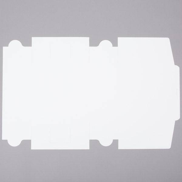 White Non-Window Bakery boxes are made of clay-coated kraft paperboard, which is white on the outside and brown on the inside. Each one piece box has an attached tuck-in lid, and can be used to hold and carry a variety baked goods. The lock corners facilitate assembly and enable the box to be folded flat for storage or transport. The clay-coated exterior can be custom printed with a logo or a business name. Paperboard is thicker and more rigid than paper and can be recycled or composted.
