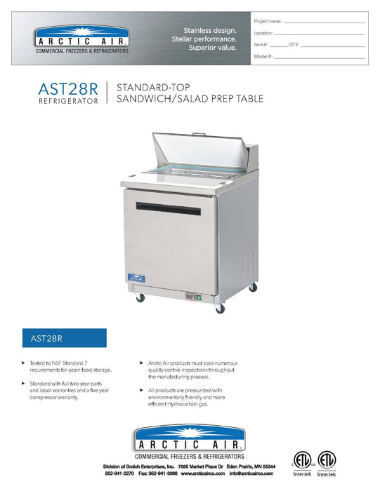 Arctic Air AST28R One Door Sandwich / Salad Prep Refrigerator