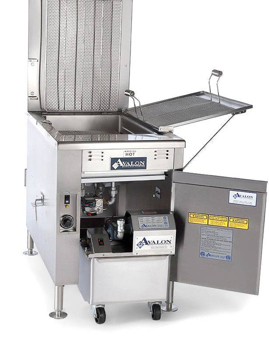 The Avalon Electronic Ignition Gas Fryer comes standard with all Stainless-Steel Heavy-Duty construction, Exterior Drain Valve Control, Bolt Down Legs, Donut Cutter Mounting Bracket, and highly sensitive easy to use controls. It provides quick start up, fast recovery, money saving efficiency and many years of trouble-free service (120 VAC).