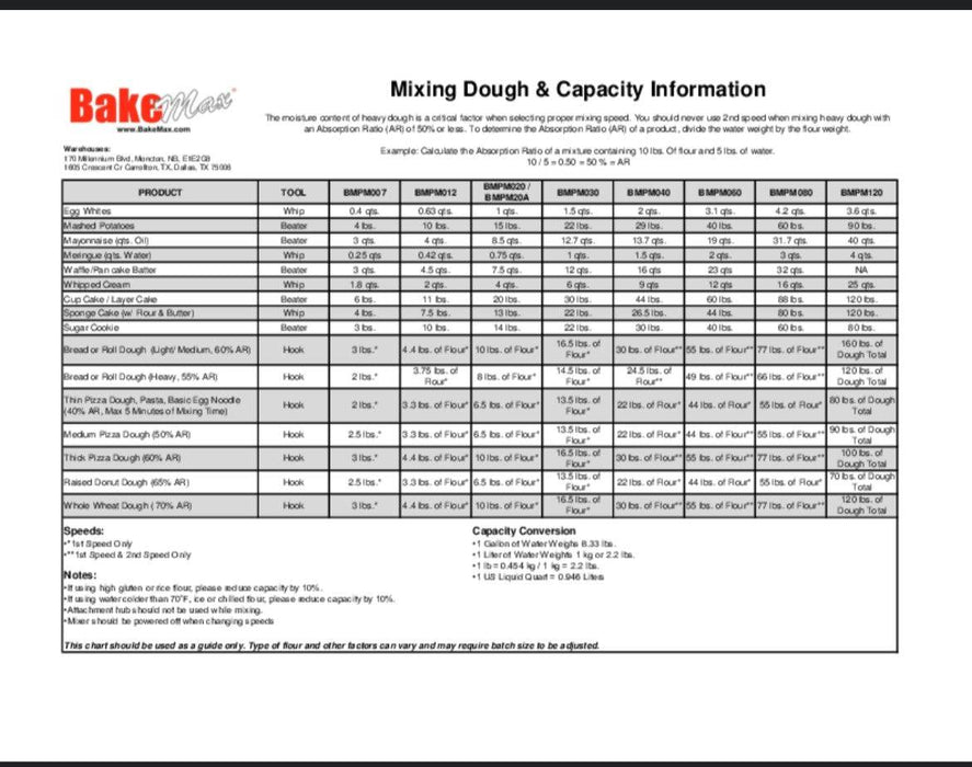 The BakeMax® 30Qt Planetary Mixer features three fixed speeds with easy speed shifting and boasts a powerful motor. Standard accessories include stainless steel bowl, spiral dough arm, flat beater, wire whip, safety guard and timer.