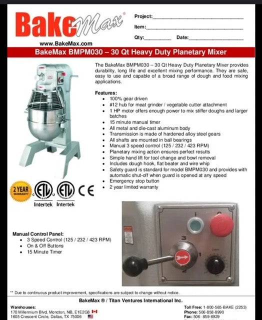 BakeMax (BMPM030) 30Qt Planetary Mixer