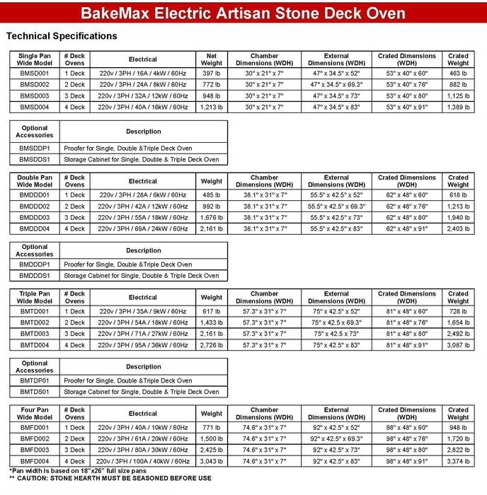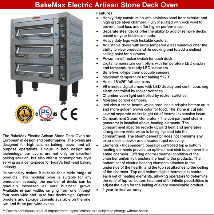 BakeMax Electric Artisan Stone Deck Ovens 4 Pan Wide, 1 to 4 decks