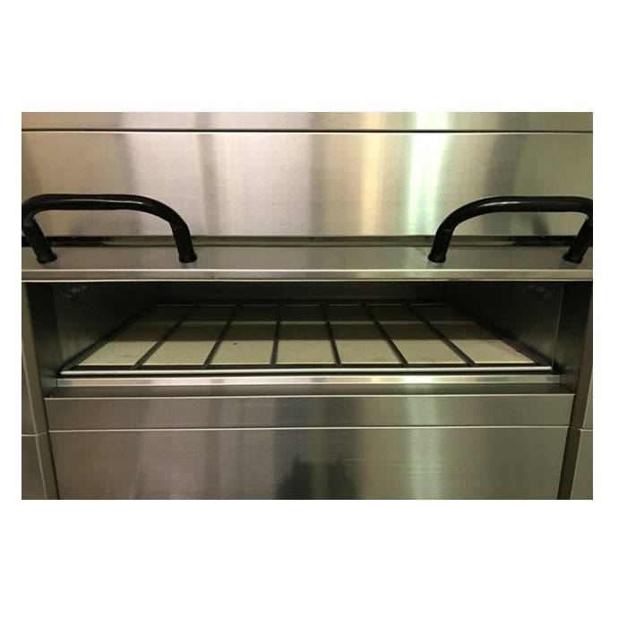Includes a stone hearth which produces a crispier bottom crust and more golden brown color for food. The stone is cut into several separate decks to get rid of thermal expansion issue.