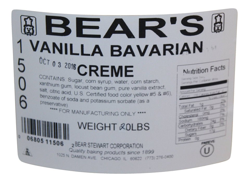 Bear Stewart Vanilla Bavarian Crème Pastry, Pie and Cake Filling- 20 Pound Pail