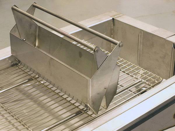 The drain tray makes glazing donuts (or other product) more convenient and flexible. After glazing one screen of donuts, place it on the drain tray for a minute or so, to avoid drips falling on the floor, baking rack or other storage. Attaches to either side of the glazer.