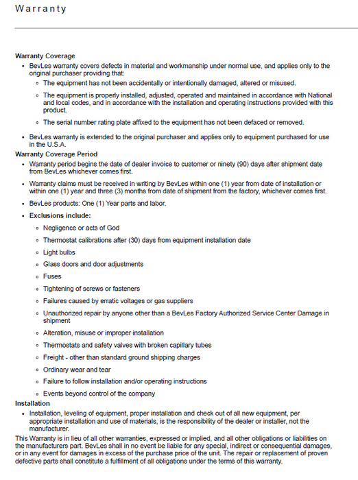 - BevLes "cast-in" humidity system prevents element burnout while providing added safety for the operator