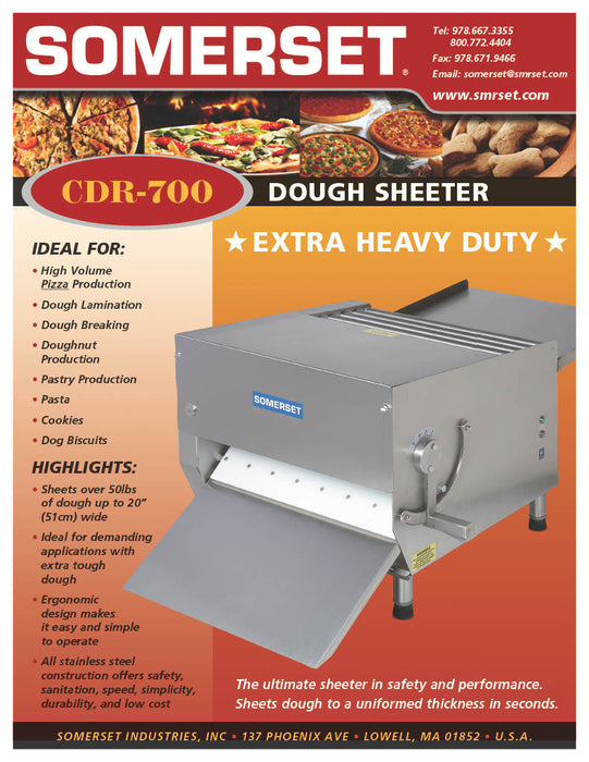 In any professional foodservice environment, equipment downtime is not an option. Professionals need reliable equipment that works as hard as they do and the Somerset CDR-700 dough sheeter is designed and engineered to withstand the demands of high-volume.
