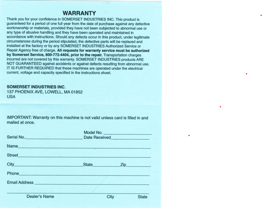 - Electrical Specifications: 115V, 60 hz, 1 phase, 1 hp
