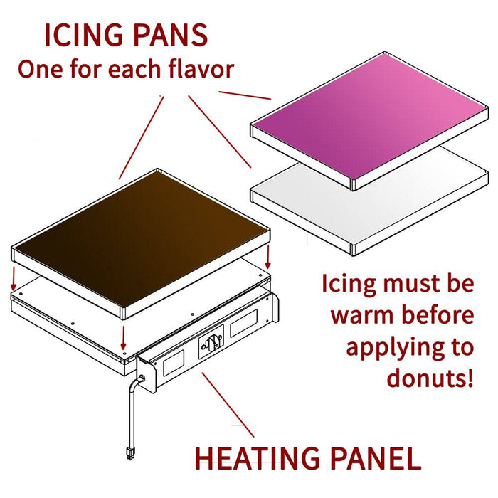The optional Heating Panel adds to the convenience of using extra icing pans with a Belshaw Adamatic HI18F Icer. In advance of swapping one flavor for another, first, place the pan with the new flavor in the heating panel, and warm it up ready for use.